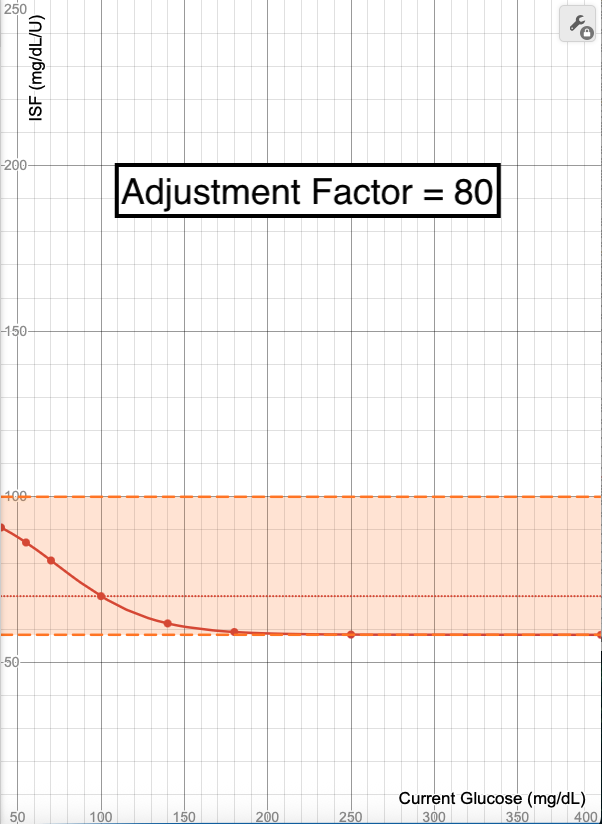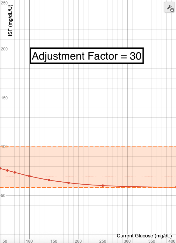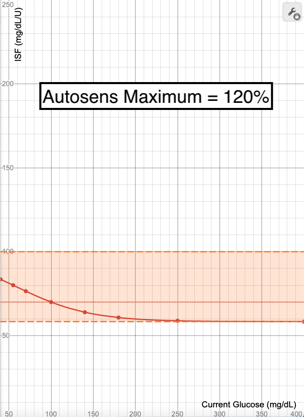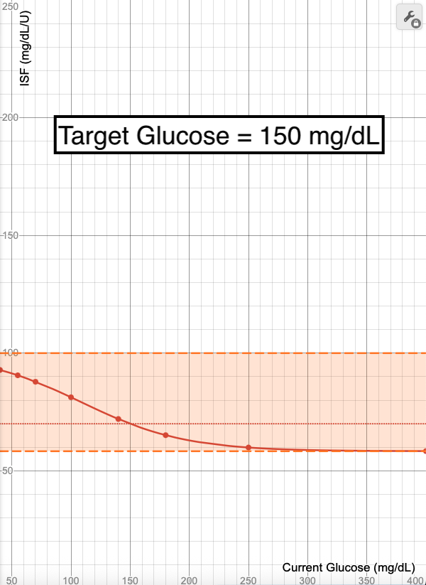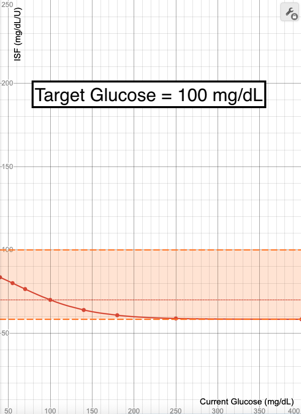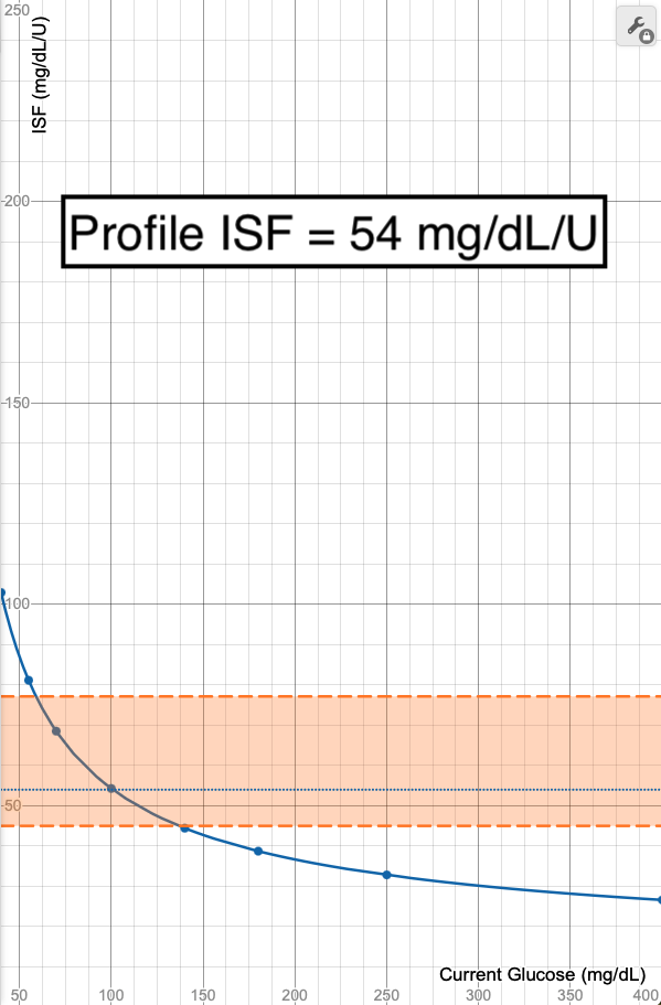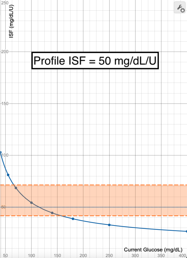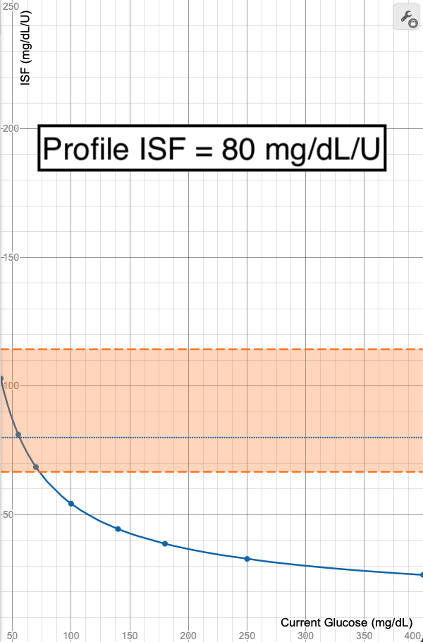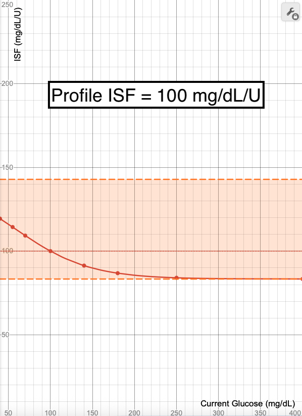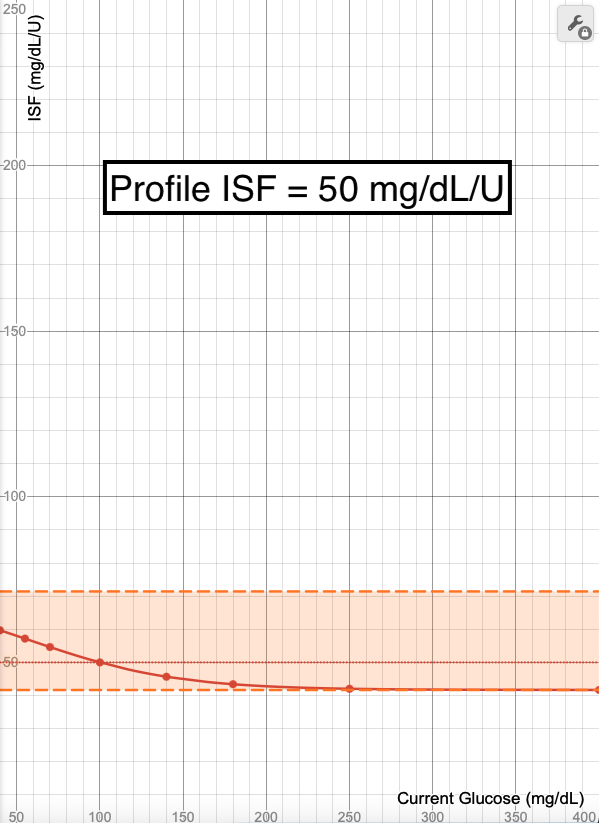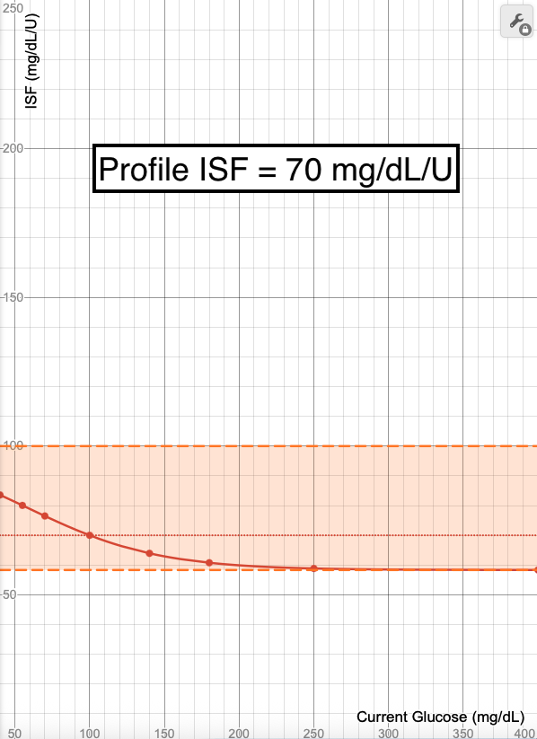 - The blue line in these images shows what ISF is used (Y-axis) when your glucose is at a certain value (X-Axis). Each point on the graph (X,Y) means at a glucose of "X", an ISF of "Y" is used.