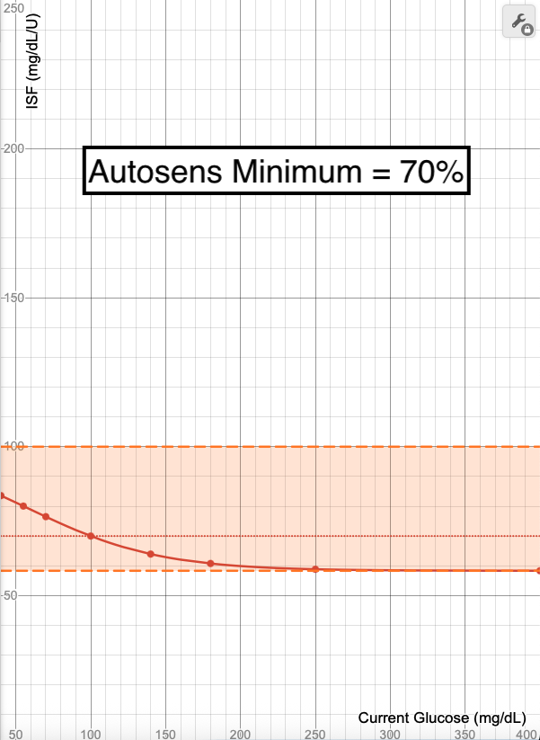 Decreasing your Autosens Minimum has the expected effect of lowering the percentage in which ISF can be adjusted when using Sigmoid Dynamic ISF. The same way that Autosens Maximum will change the steepness of the curve, adjusting Autosens Minimum will have the same effect.
